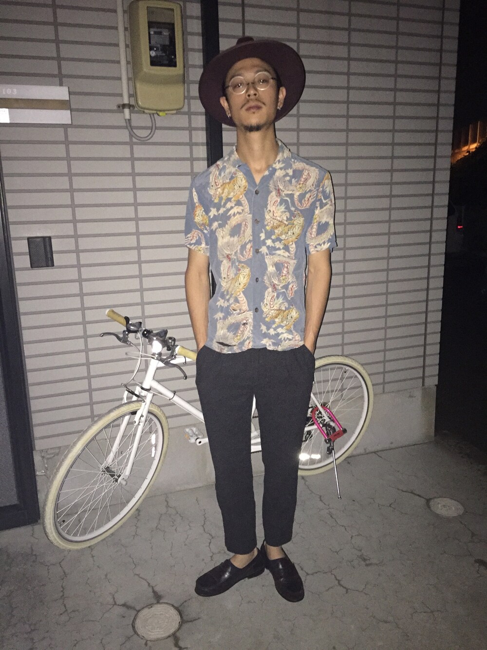 龍の和柄シャツをカッコよく着こなせたらと思いコーディネートしてみました! ブラウン系のハットと靴でバランスをとりながら間に和柄シャツをいれる事でインパクトがでるスタイルではないでしょうか!