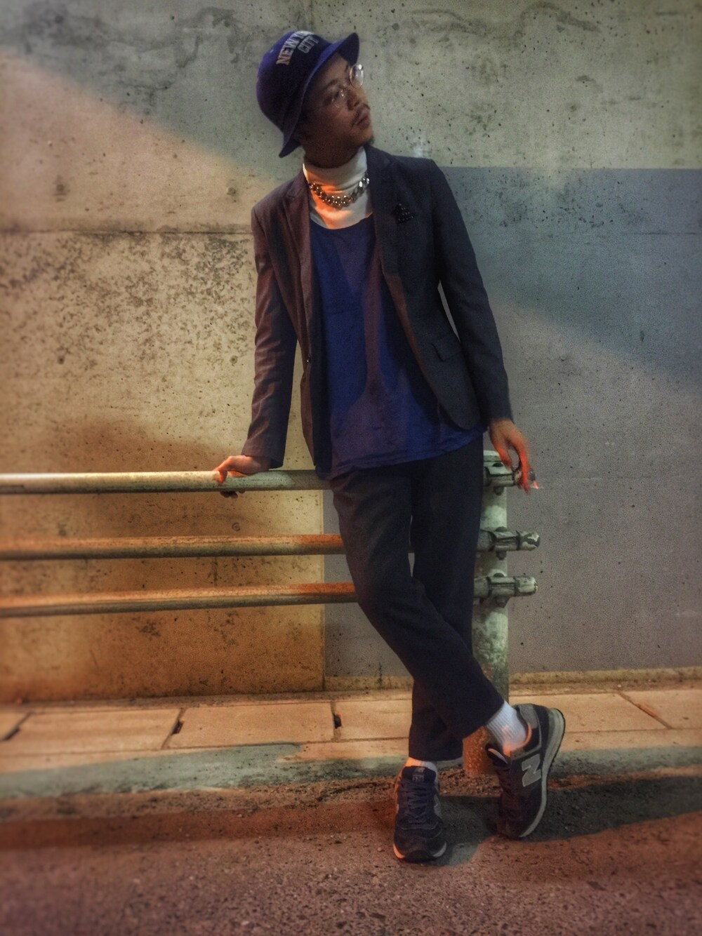 ^_^今日は雨ですねぇ🎶昨日夜に撮った写真のアップになります!今回はセットアップになります。😁ハットやネックレスで少しはずしながらブルー系と黒系なんかで統一感を出してみました。👀バランスよくはずしながらストリート感を上手く表現出来たらなと思いながら作ってみました。✨