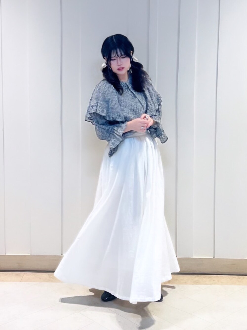 とっても可愛いビックカラーのブラウスにふんわりとした動きが可愛いスカートを合わせました💕 ビックカラーの為小顔効果もばっちりです👍 トップスもボトムスも綿でできている為、通気性もよく春~夏にぴったりです✨ このコーデでピクニックに行きたい〜🥹