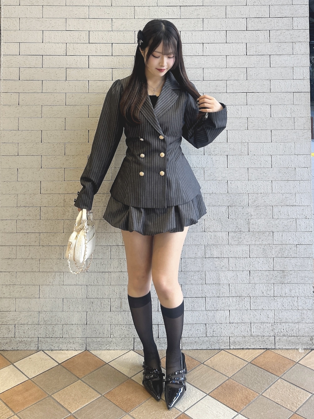 Sakura(one after another NICE CLAUP)のテーラードジャケット「【premium order】サイズ展開あり/セットで着れる/後ろレースアップテーラードジャケット」を使ったコーディネート