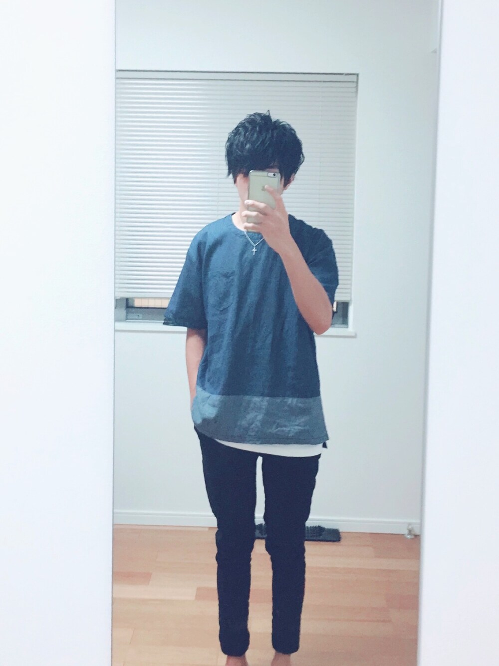 プルオーバーシャツに白のレイヤードで今っぽくしてみました!黒のジョガーパンツもすごく履きやすくて気に入ってます