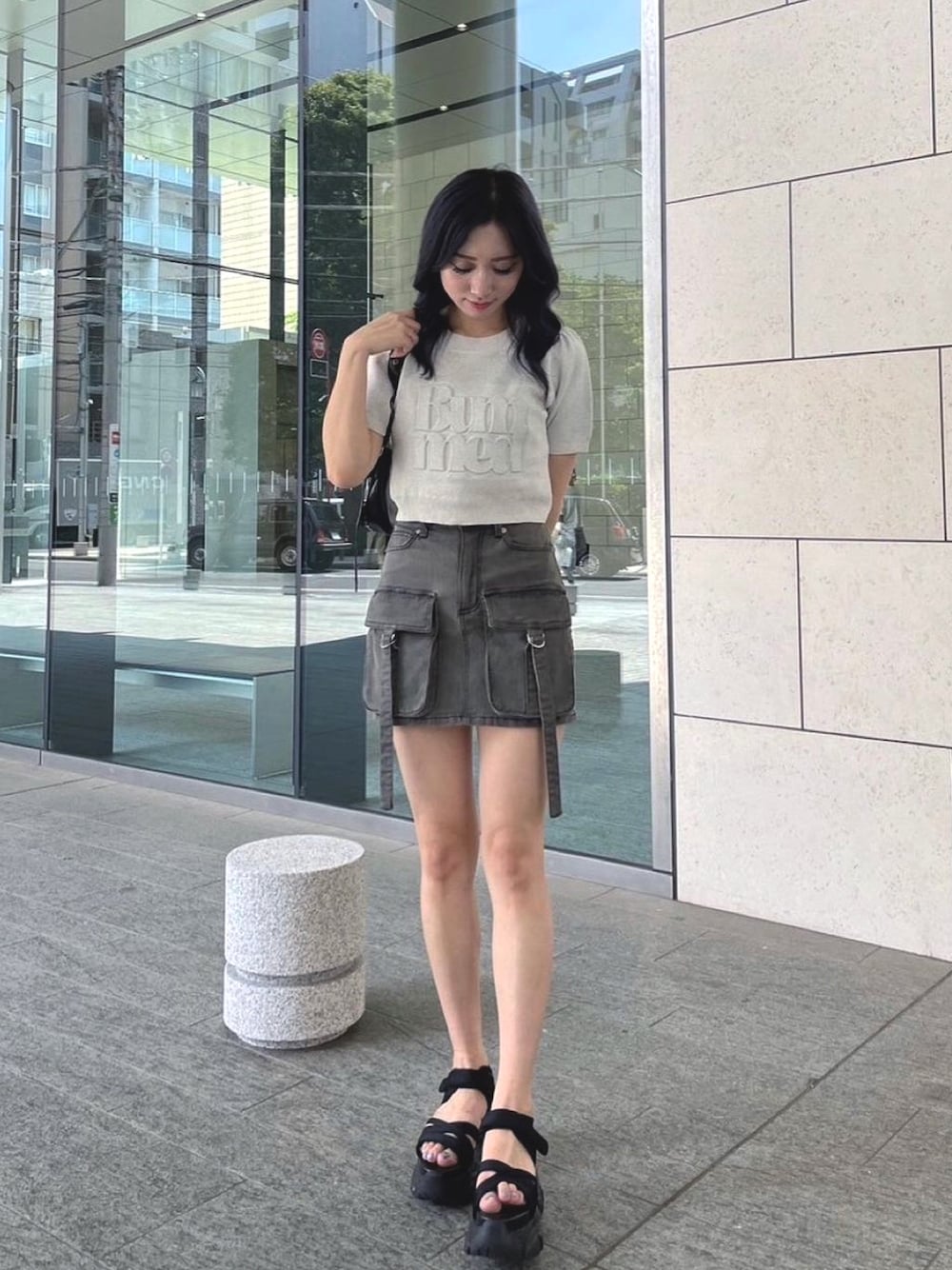 miku(SPIRALGIRL ルミネエスト新宿店)のデニムスカート「カーゴストレッチデニムミニスカート」を使ったコーディネート