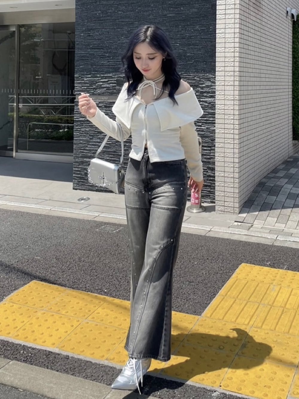 スウェットなのにラメが入っているので、どんなボトムと合わせても上品に着ていただけます! 首元の紐は前でも後ろでも好きなほうで結べるし、あえて結ばず巻き付けるだけでも可愛い!💞 デニムのパンツには、セットアップできれるジャケットもあるので、SPIRALGIRLの公式サイトでご覧ください🙌🏻