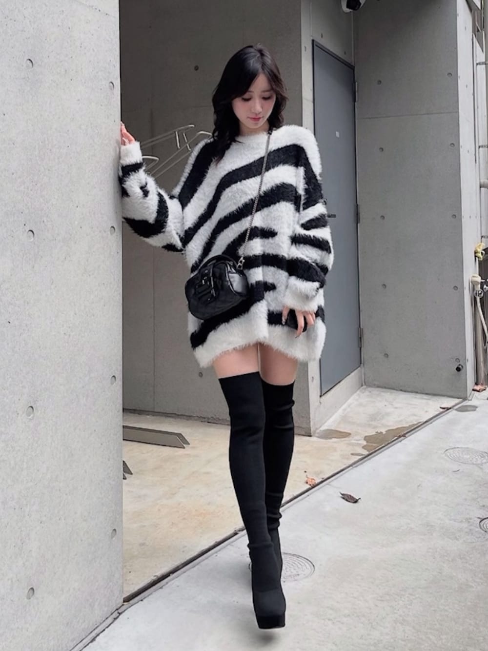 miku(SPIRALGIRL ルミネエスト新宿店)のニット/セーター「ゼブラ柄シャギーニット」を使ったコーディネート
