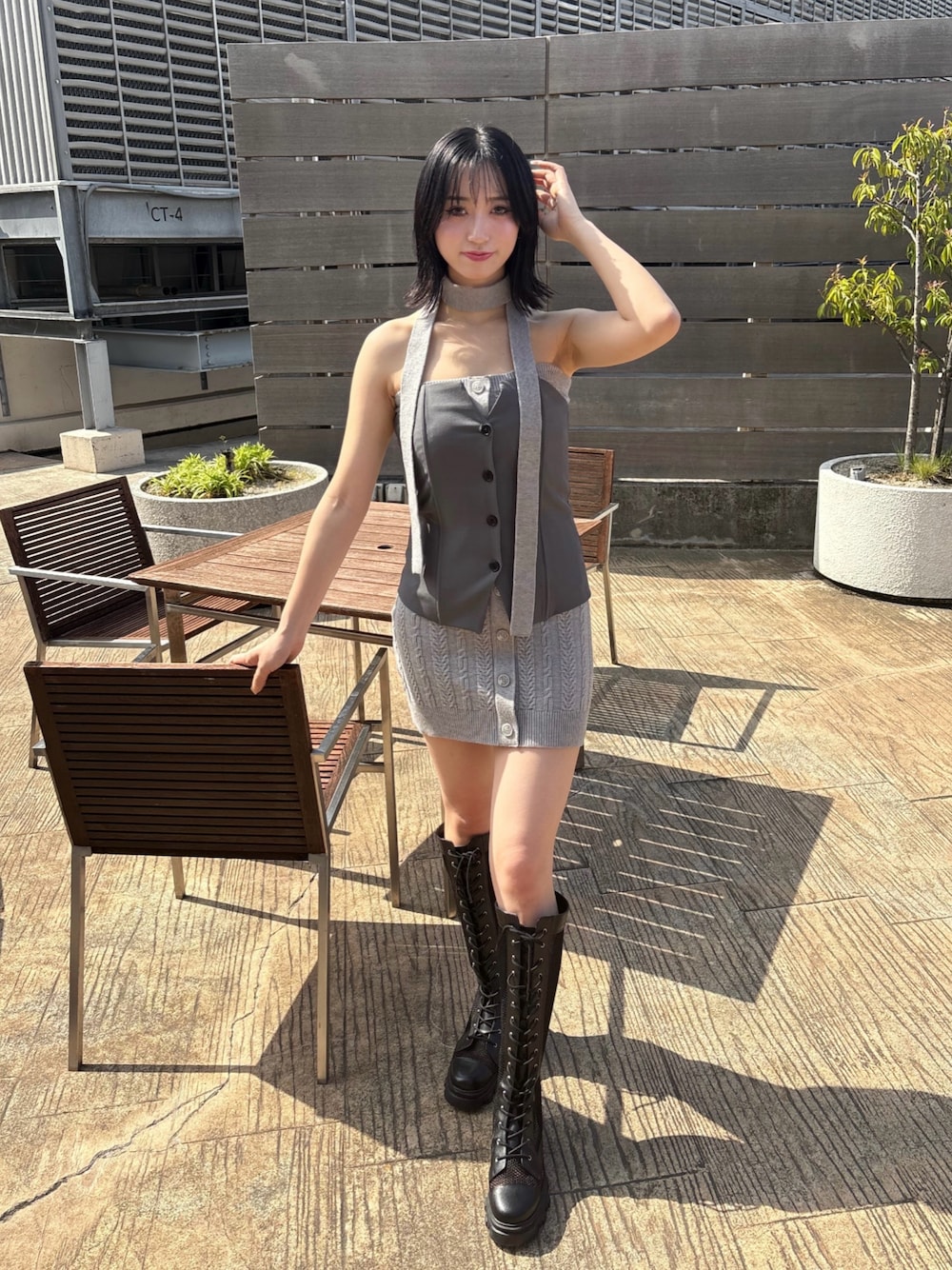 ニットは薄目で夏でも暑くないし、単体でも着れます! ビスチェを合わせることでくびれのラインも綺麗に見えるので、セットできるのがおすすめです!💞