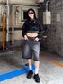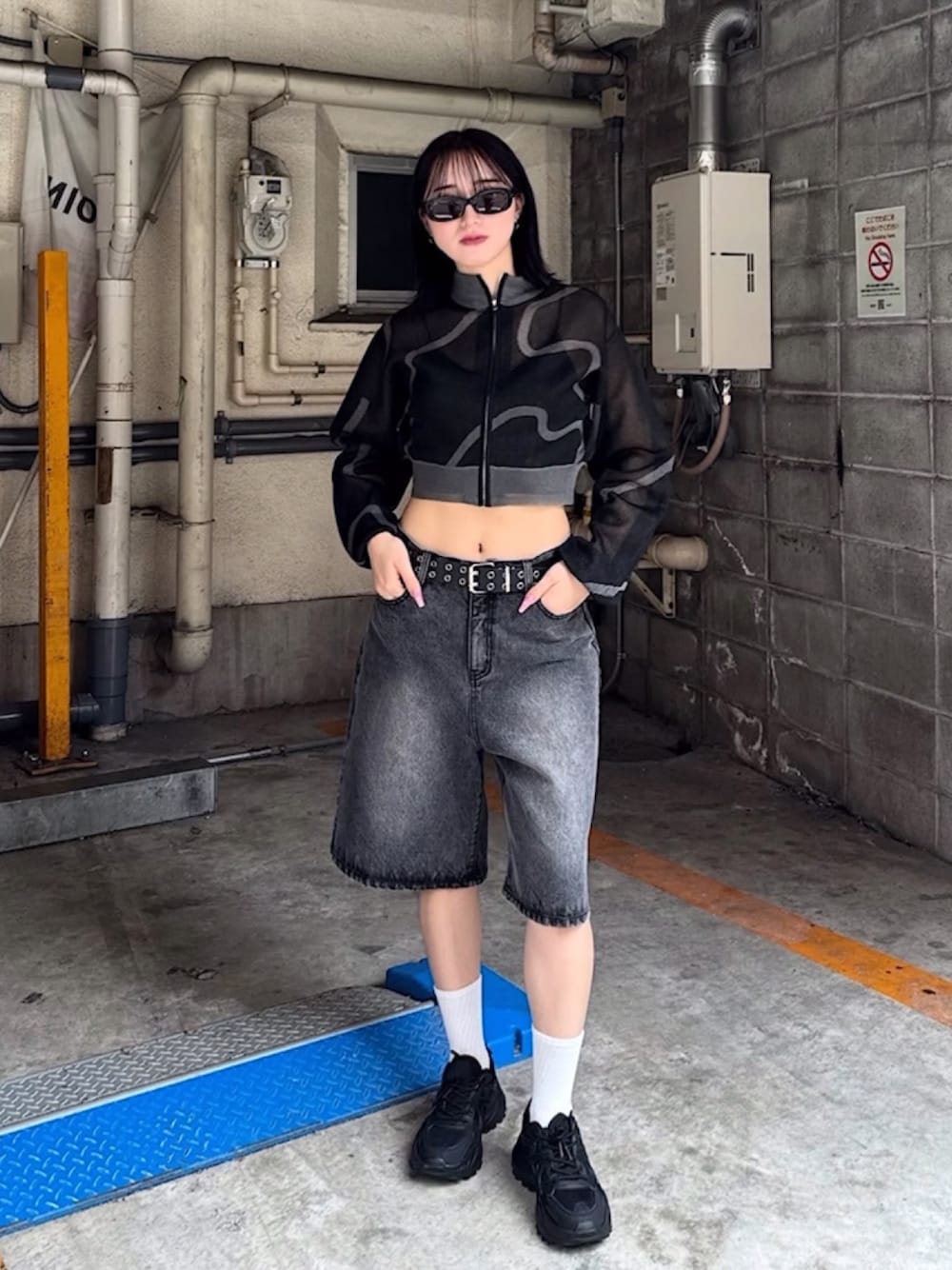 シアーブルゾンは羽織として着る方が多いと思いますが、前を閉じてくびれを強調してくれる着方も個人的にはおすすめです! 冷房対策としてパーカーが暑くて苦手という方にはこちらのアイテムが人気です! ハーフパンツはしっかりとしたワイド型でAラインのシルエットになっているので、骨盤の張りも気になりません!✨