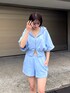 ウエストのリブが幅広く作られているため、前を閉めるとくびれの強調をしてくれます! セットアップ以外では、ダボッとしたボトムスやメリハリのつきにくいワンピースと合わせるのもおすすめです!✨ また、袖のボタンで取り外しも可能になったので夏は半袖、春や秋は2個だけボタンを外したカッティングのデザインでも楽しめます!