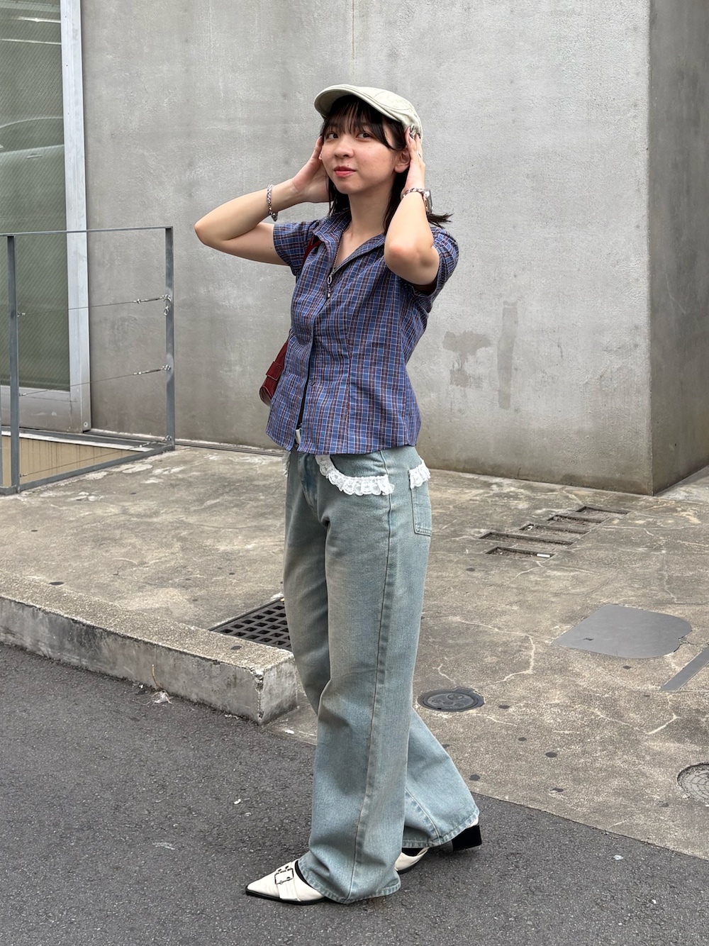 149cm 骨格ストレート 骨ストの味方☆ 体のラインを綺麗に見せてくれるコンパクト柄シャツ!! 柄と小物のカラーでバランス取って、秋ちょっと意識してみました🍂 デニムと合わせるとカジュアル目に仕上がって◎⋆˙⟡