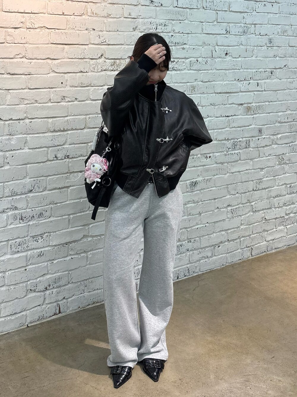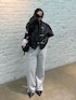首元が詰まる系のアウターだから、パンツはスッキリさせつつ、紙も結んで重たくならないようにしたよ^^