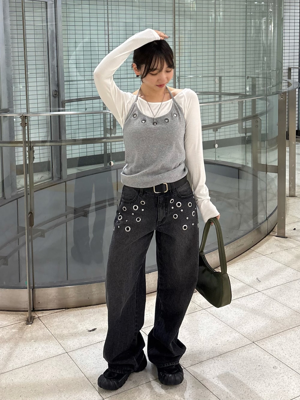 サクヤのデニムパンツ「EYELET LOW RISE DENIM /アイレットローライズデニム」を使ったコーディネート