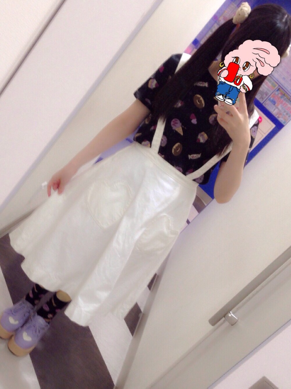 わー初投稿! これでいいのかよくわかってない! 靴下もトップスと同じ柄🍩 ヘアゴムはスイマーの🐻