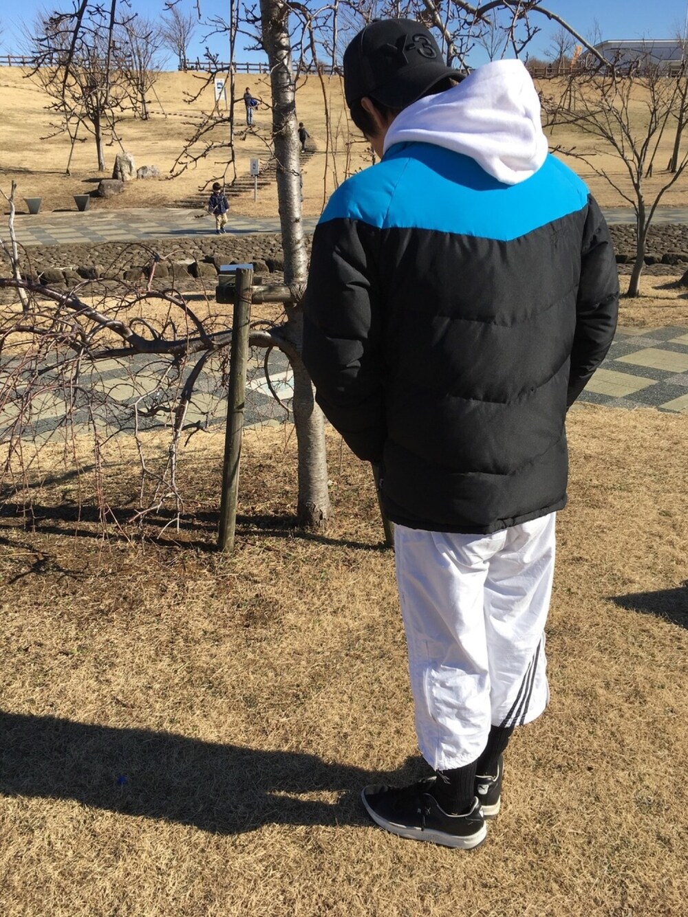 こどもと公園にサッカーと野球をしに来ました。 このSTUSSYのダウンは保温性抜群で、動き回ると汗かきます😆