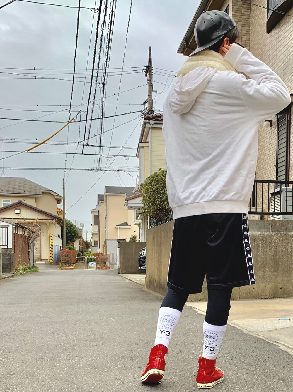 今年もよろしくおねがいします🙇♂️ そのへんに買い物、てな感じでパーカーにハーフパンツレイヤードで! モノトーンベースに本日の差し色は赤コンで入れてみました😊 シンプルの中のワンポイントにはこのY−3のチューブソックスにお世話になってます!赤と白と持ってますがヘビロテです😆