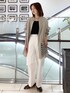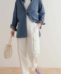 タンクトップをインにしてリネンシャツを羽織るだけで女性らしさUP。