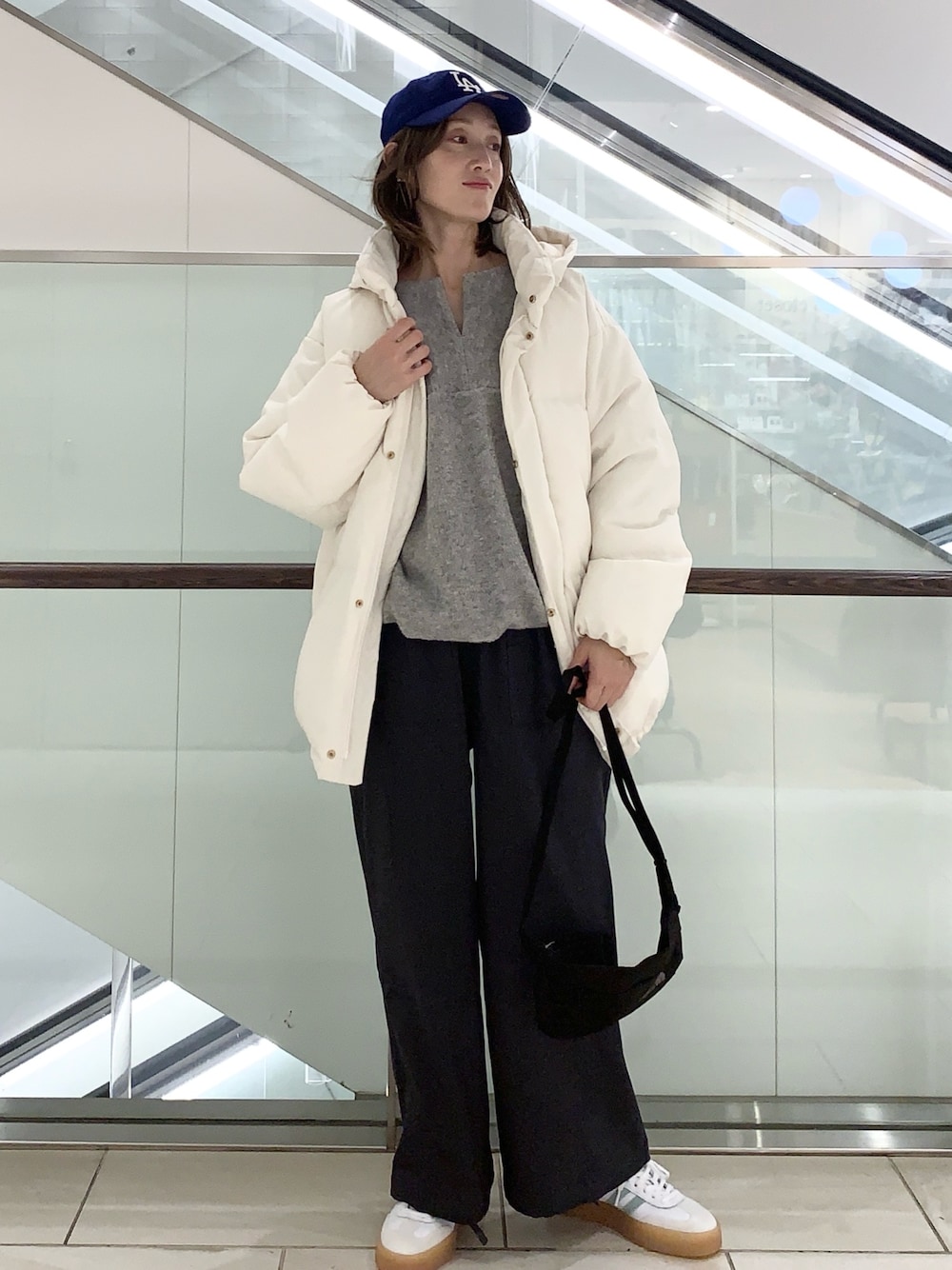 ご覧いただきありがとうございます。 ✔グリーンダウンミドルジャケット 硬めな表面とオーバーサイズがハンサムな印象です。見た目ほど重たくなく、ドロストを絞めるとしっかりスタイリングできます✨ あえてのMサイズで、メンズライクに着ています😊 メンズライクなお洋服を着る時は、サイズ感がとても大事で、そのバランスを楽しむようにしています! NewEraのキャップはポイントになります😊 可愛い✨こういう強いカラーのポイントの入れ方好きです✨