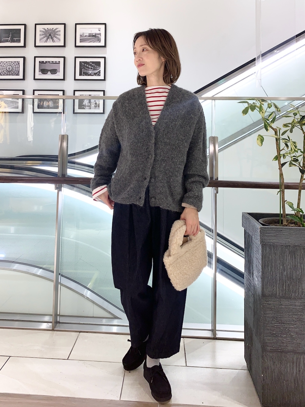 yama(DOORS グランエミオ所沢)のカーディガン/ボレロ「アルパカVネックカーディガン」を使ったコーディネート