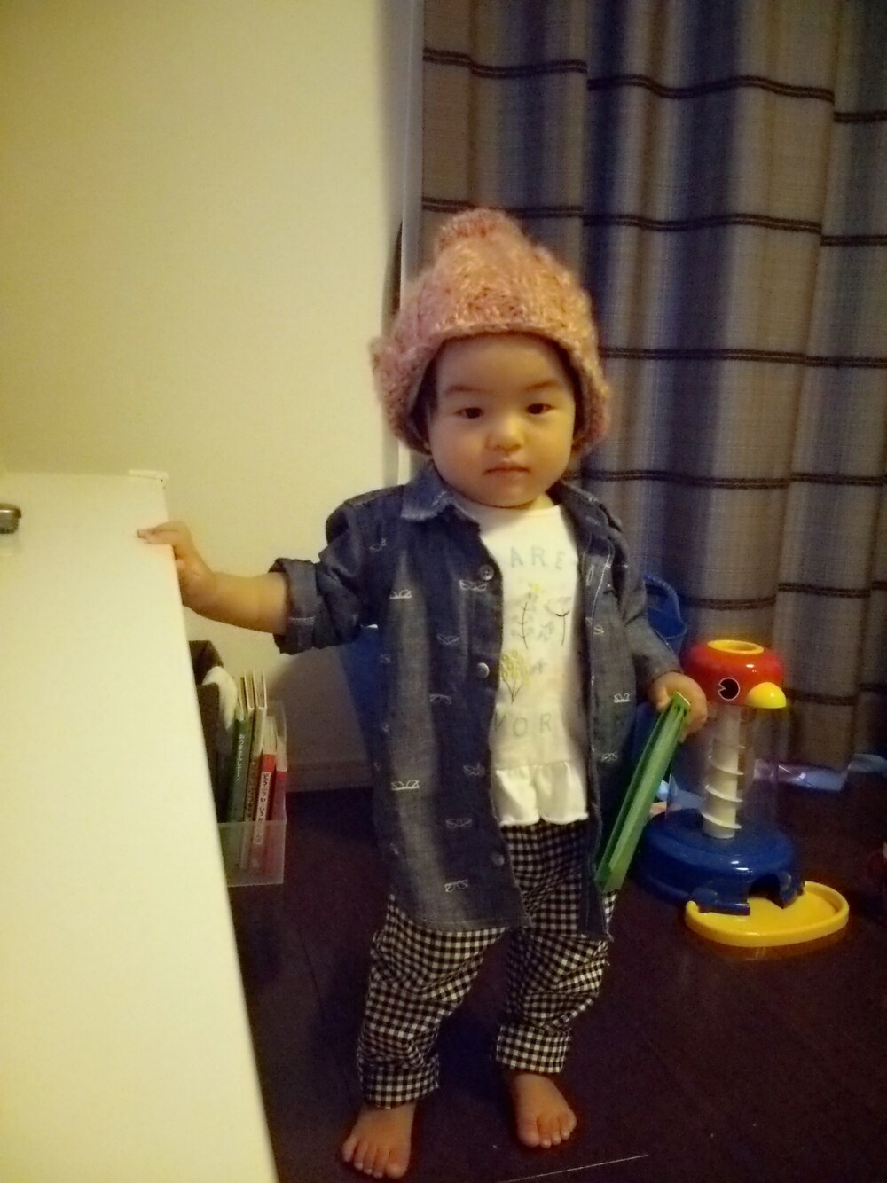 こーゆー服着せるとやっぱり男の子っぽくなってしまう(^^; 帽子を取っちゃう数秒前…