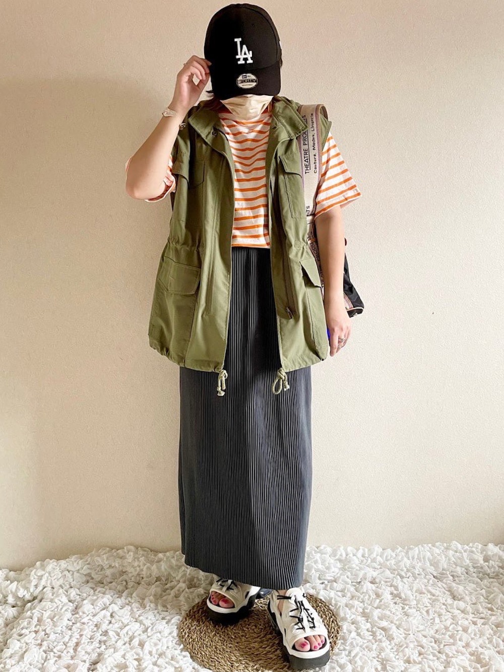 ◀︎◀︎ 152cm/プチプラ購入品&コーデ載せてます🧺 ------------------------------- #いつかのコーデ オレンジ×カーキの組み合わせ好き🫶🏻💗 @kirakirashop_kg さんのプリーツスカート 軽くて楽ちんです🤤✨ 丈長めだから切りたいんだけど (セルフカット出来るやつ!) ズレたら怖くてまだ出来てない😂😂 めちゃくちゃ不器用なんですよね私…🥵🔥 でも切る!✄ 近いうちに必ず…!!✊🏻 . . . ☑︎vest : @oneway_press ☑︎inner : @shimastyle.jp @linoluce_official ☑︎skirt : @kirakirashop_kg ☑︎bag : @theatre_products ☑︎shoes : @nike ┈┈┈┈┈┈┈ ❁ ❁ ❁ ┈┈┈┈┈┈┈┈ ご覧いただきありがとうございます🌷🫧 フォロー・いいね嬉しいです♡⸝⸝⸝⸝ Instagram ▶︎▶︎ @3a8n_2 ┈┈┈┈┈┈┈ ❁ ❁ ❁ ┈┈┈┈┈┈┈ #コーディネート#コーデ記録#プチプラ#プチプラコーデ#プチプラファッション#ママコーデ#低身長コーデ#カジュアル#カジュアルコーデ#カラーコーデ#骨格ストレート#韓国ファッション#韓国コーデ#partegram#おしゃれさんと繋がりたい#しまむら#しまむらコーデ#しまパト#しまむらパトロール#しまスタ#しまむら購入品#ボーダートップス#オレンジコーデ#ミリタリーベスト#kirakirashop#kirakira_style#プリーツスカート#ナロースカート @magaseek #magasta_2208