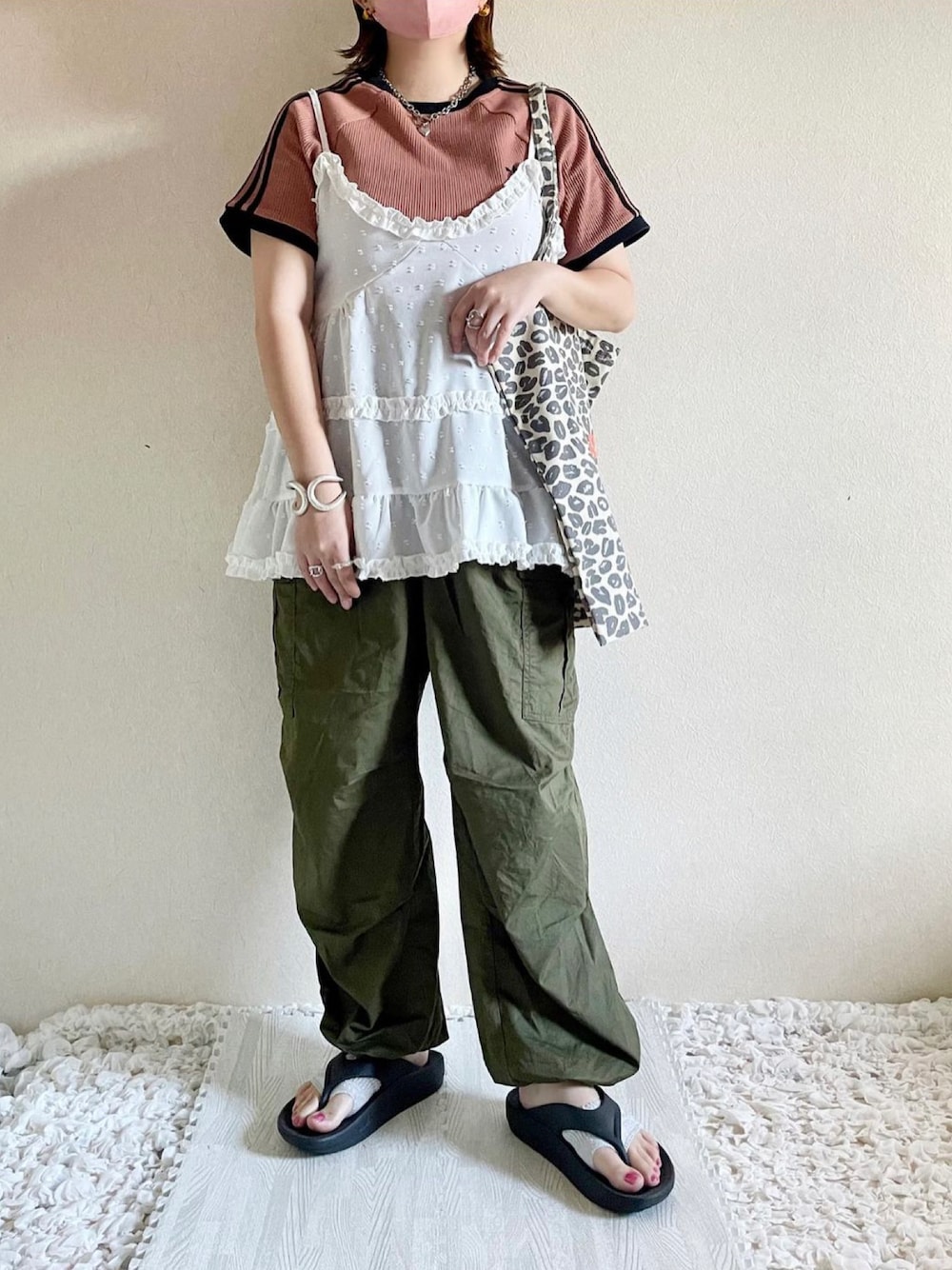 Instagram ▶︎▶︎ @3a8n_2 ┈┈┈┈┈┈┈ ❁ ❁ ❁ ┈┈┈┈┈┈┈┈ 8月コーデ消化中🌻 これはふりふりキャミが着たかった日の🤍 . . adidas T着たり、カーゴパンツ履いたり、 レオパ柄取り入れたり、ただただ 好きを詰め込んでしまった🤣🫶🏻 激甘コーデ🍰にならないように、 それだけ気を付けました。(笑) . . DAISOのこのビーサン履きすぎたので、 来年はOOFOSゲットしたい…な🥹💞 ┈┈┈┈┈┈┈ ❁ ❁ ❁ ┈┈┈┈┈┈┈┈ ご覧いただきありがとうございました🌷🤍 フォロー・いいね・SAVEとても嬉しいです…♡◡̈ 良かったらインスタも覗きに来てください🪽 プチプラな購入品も紹介しています🧺✨