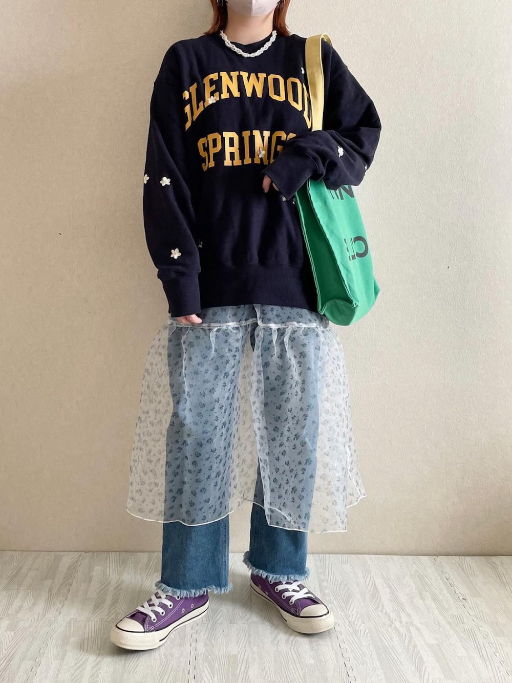 さぁやのスウェット「ロゴフラワー刺繍スウェット」を使ったコーディネート