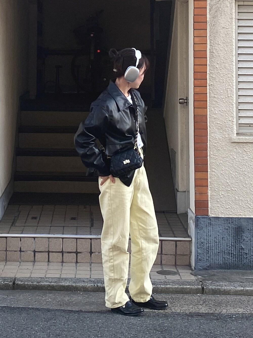辛めコーデ👒🍋🍃 レザージャケットで辛めな コーデに挑戦してみました! レモンイエローで、 爽やかな初夏コーデにしました! バッグもレザーと系統を合わせて、 かっこよさアップ⤴️💕🥹