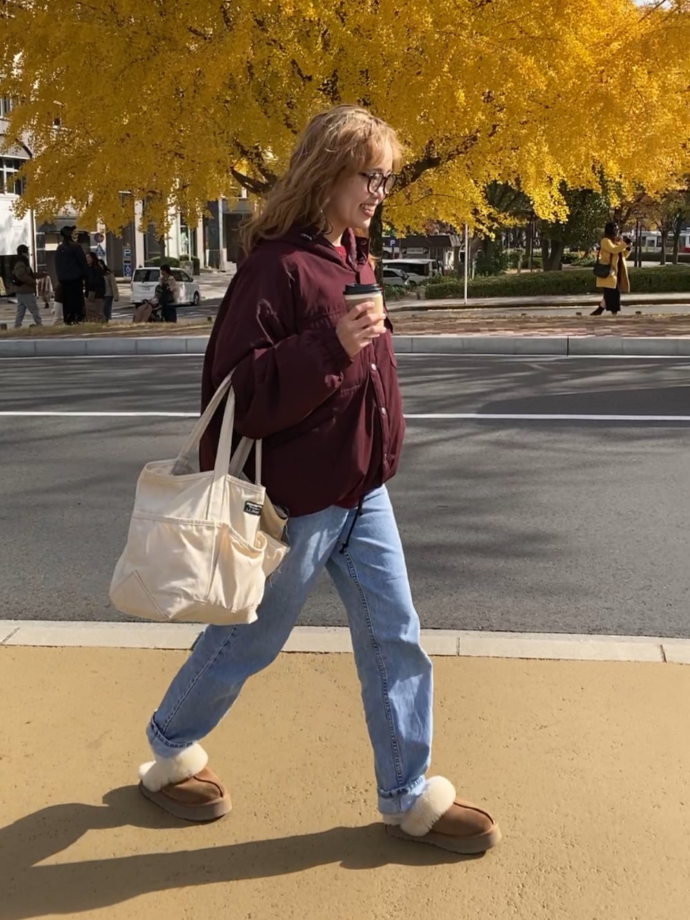 イチョウの季節☀️☕️🍂 ヴィンテージ感たっぷりのアウターに リーバイスのデニム🎶 アグのシューズで 少し可愛さを取り入れてみました! 可愛い秋冬コーデです⭐️❄️☃️🍂☕️