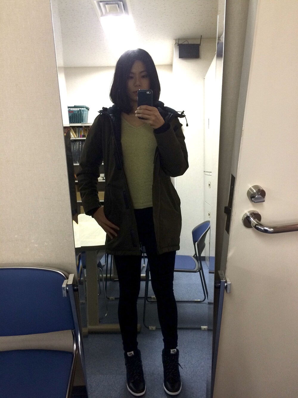最近購入したナイキのインヒールスニーカー、ダンクハイのコーデ。 ズボンも黒でつなげて、更に足長効果を狙う!笑 ストレッチフライス、肌に馴染んで気持ちいいです!