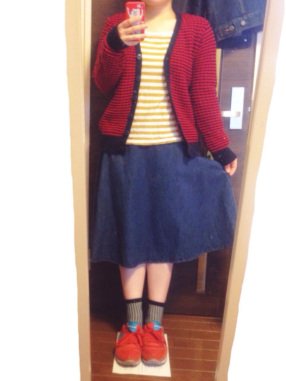 2015.04.25 ( sat ) ☀︎ やることやりましょうの日 。 お休みの日なのですっぴんカジュアル 。 トップス ▷ coen カーデ ▷ niko and... スカート ▷ w closet スニーカー ▷ saucony