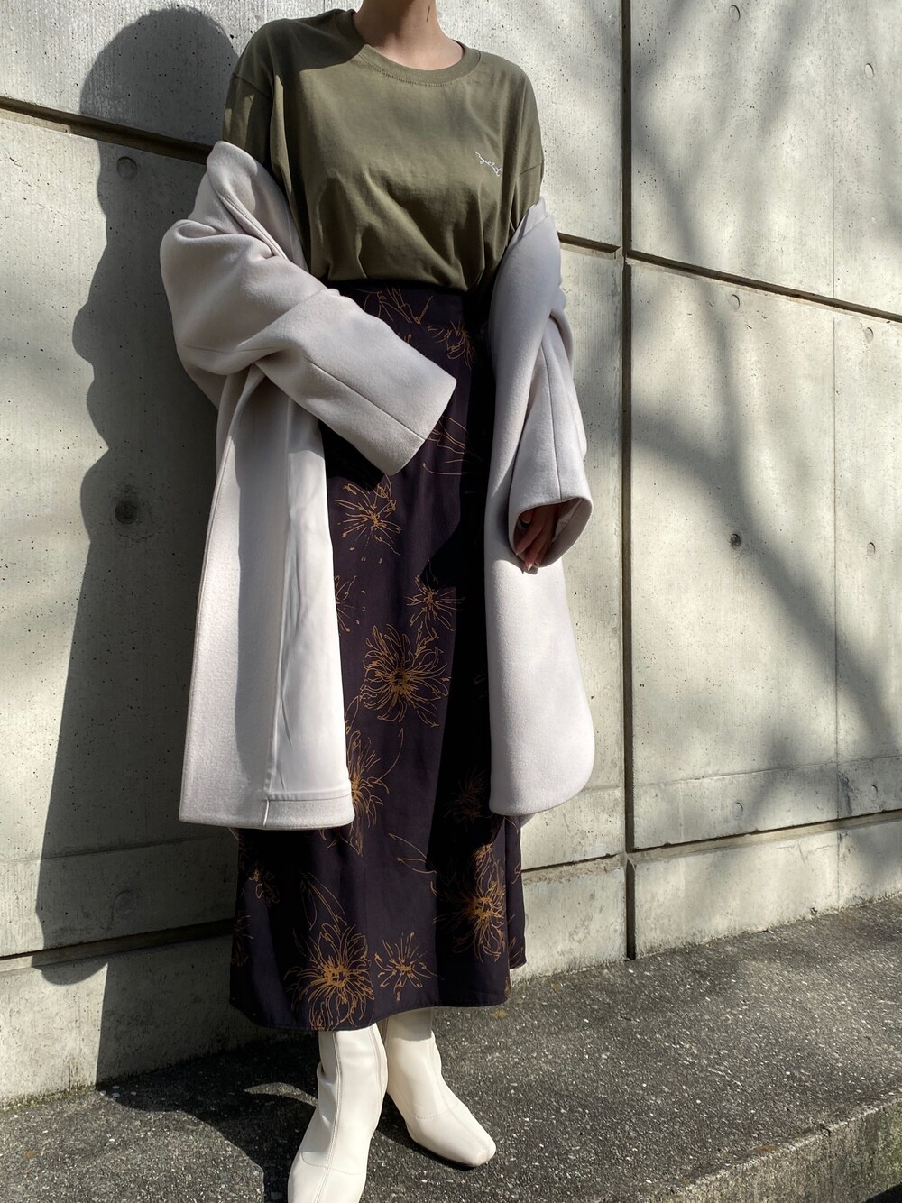 minamiのノーカラーコート「シャツカーブノーカラーコート」を使ったコーディネート