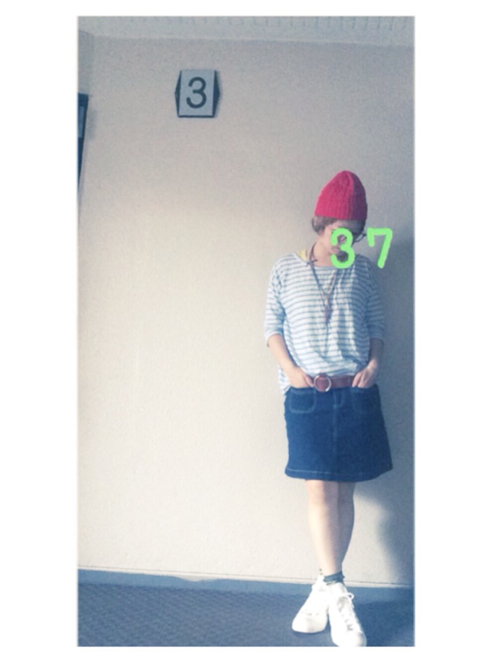 今日はボーダー×デニム◎ 急に寒いー。 初上着を。