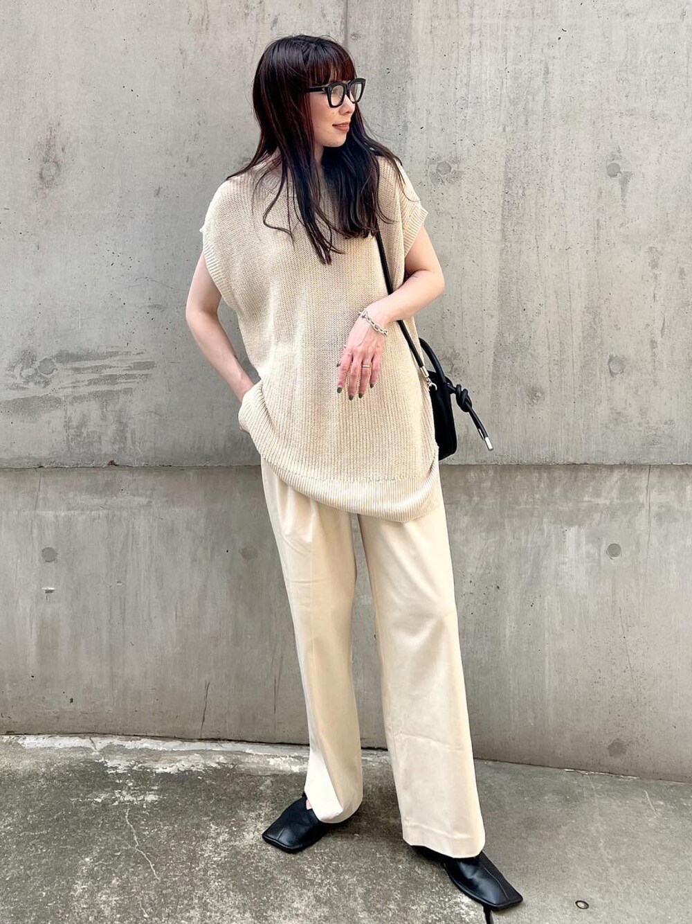 ZARAのオーバーサイズニットベストと ユニクロのタックワイドパンツでプチプラミックスコーデ❤️ 色のトーンが同じなのでセットアップ服に見えて かわいい😍