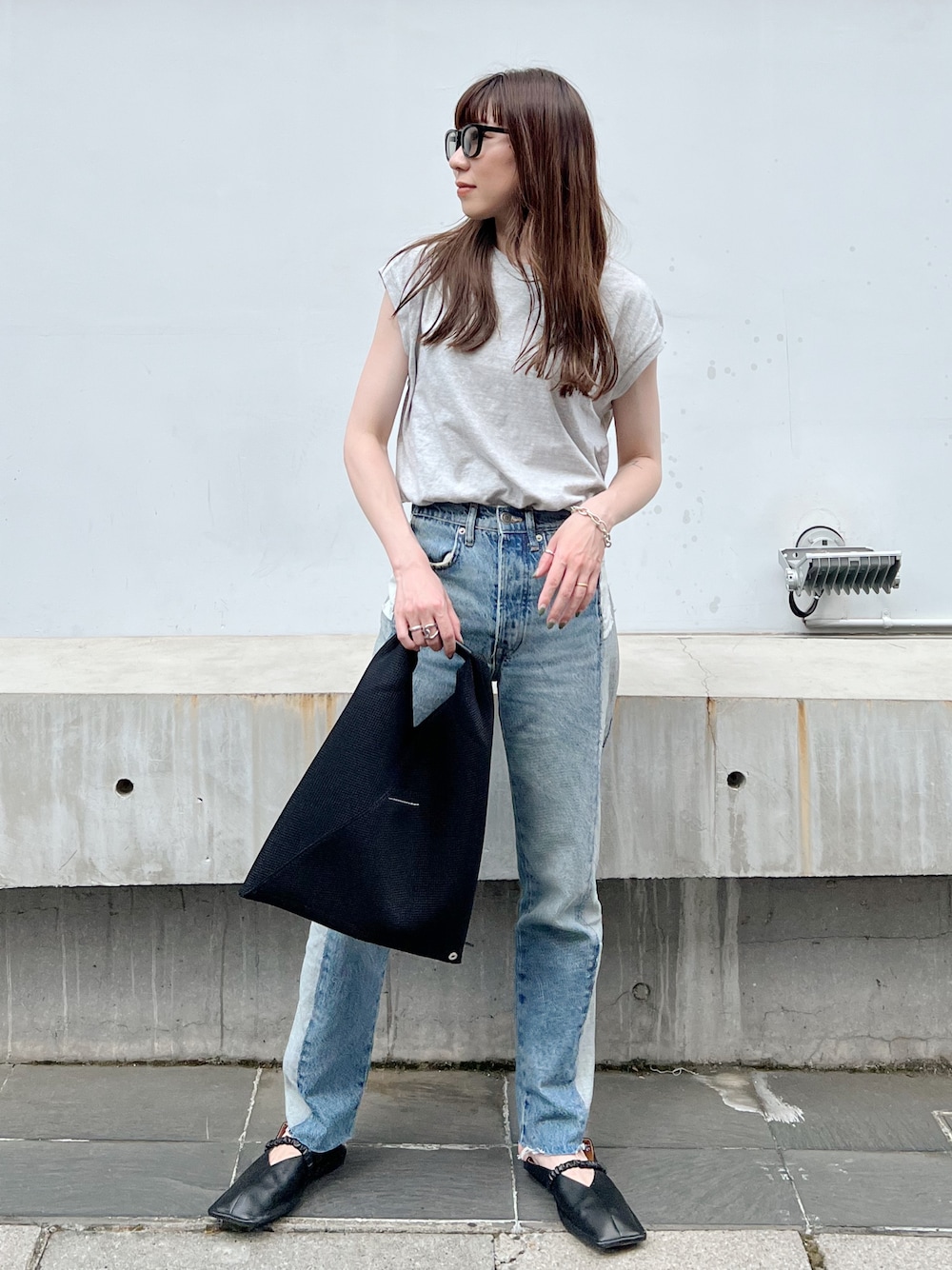 夏のシンプルコーデ! ライトグレーのフレンチスリーブTと、 ZARAの切り替えがかわいい新作デニム👖 足元はレザーのパンプスにして大人っぽく!