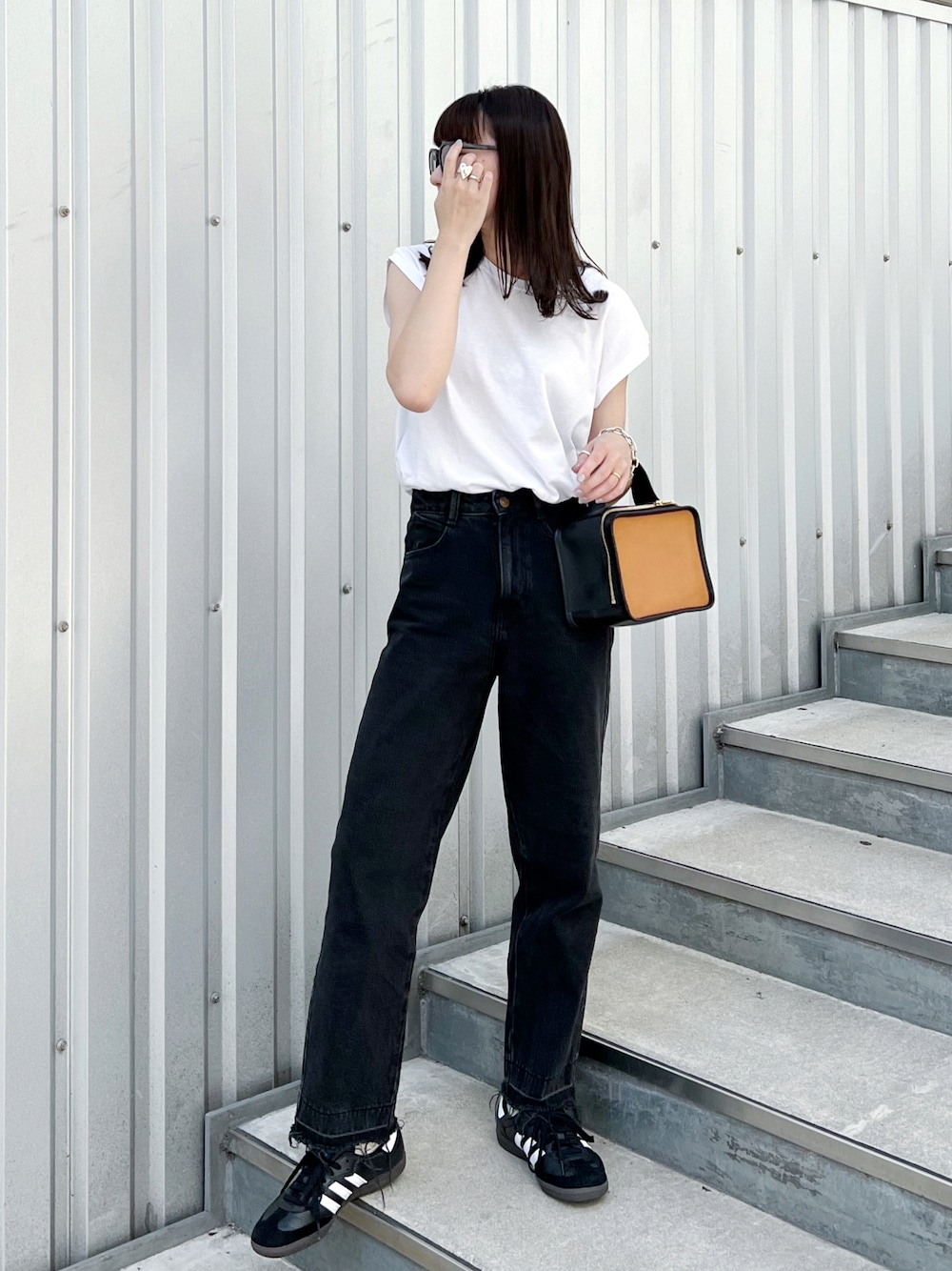 adidas sambaが主役のシンプルコーデ❤️ バッグも存在感があってお気に入り!