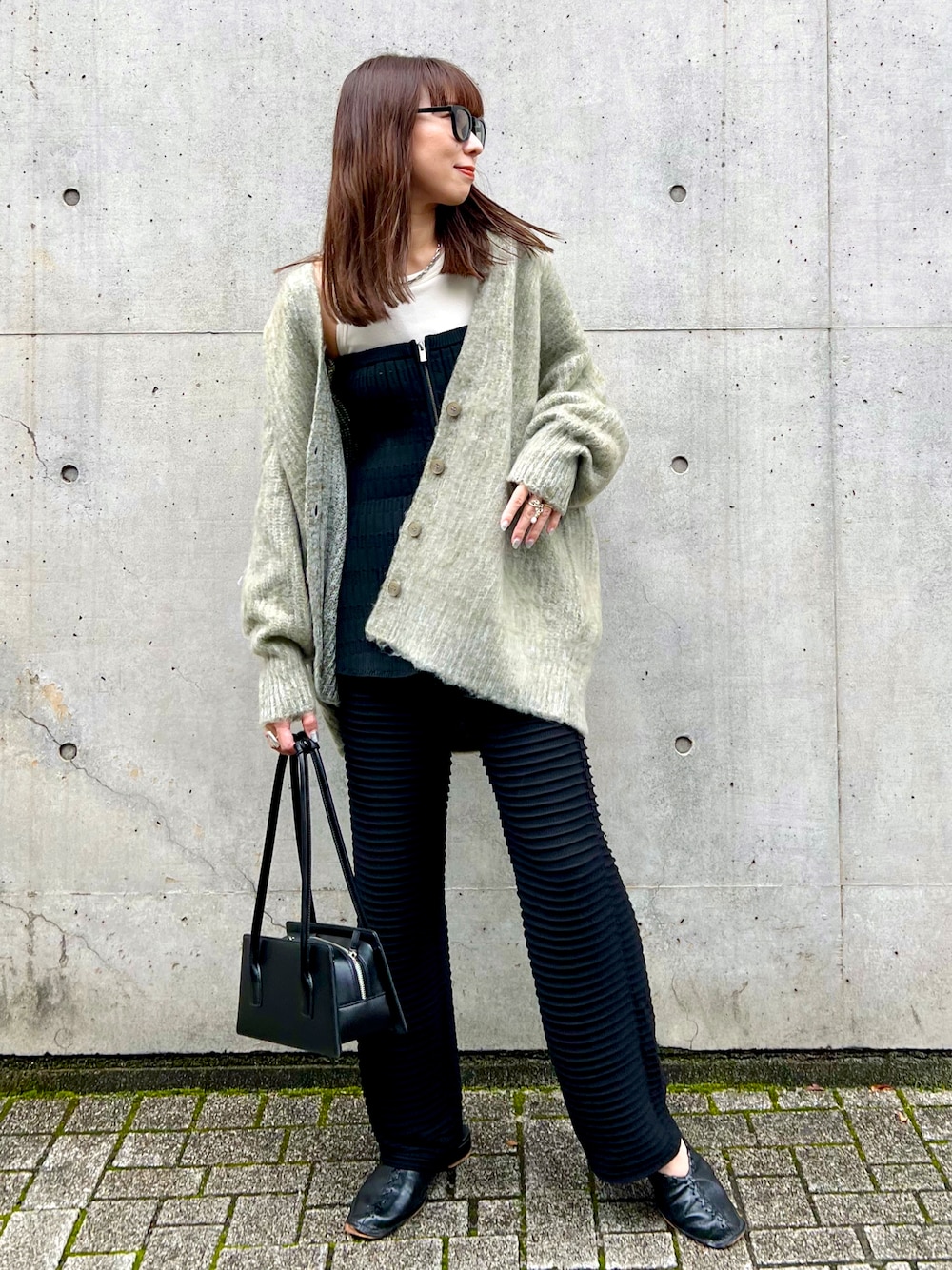 MINAEのカーディガン/ボレロ「起毛シャギールーズニットカーディガン」を使ったコーディネート