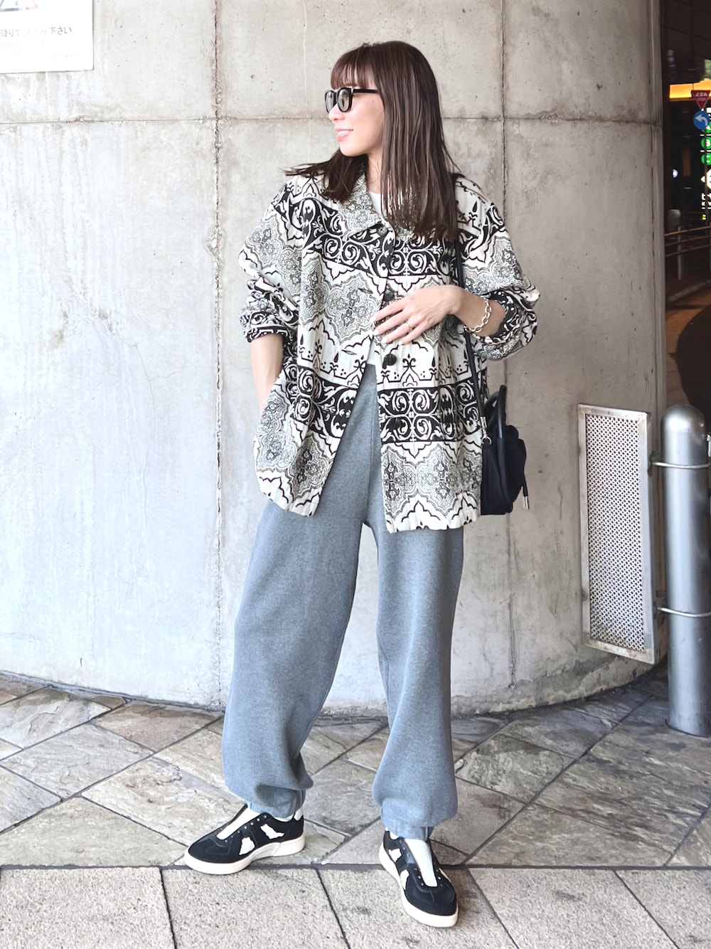 古着のジャケットにジョガーパンツでカジュアルな日❤️ スニーカーもお気に入り!