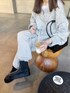 プチプラ❤️ グレーのワントーンコーデに厚底がポイントのブーツを合わせました! ニット×スウェットパンツの組み合わせ大好き😍 ニットとブーツがプチプラなので、アイテム詳細飛んでみてね🙆♀️