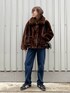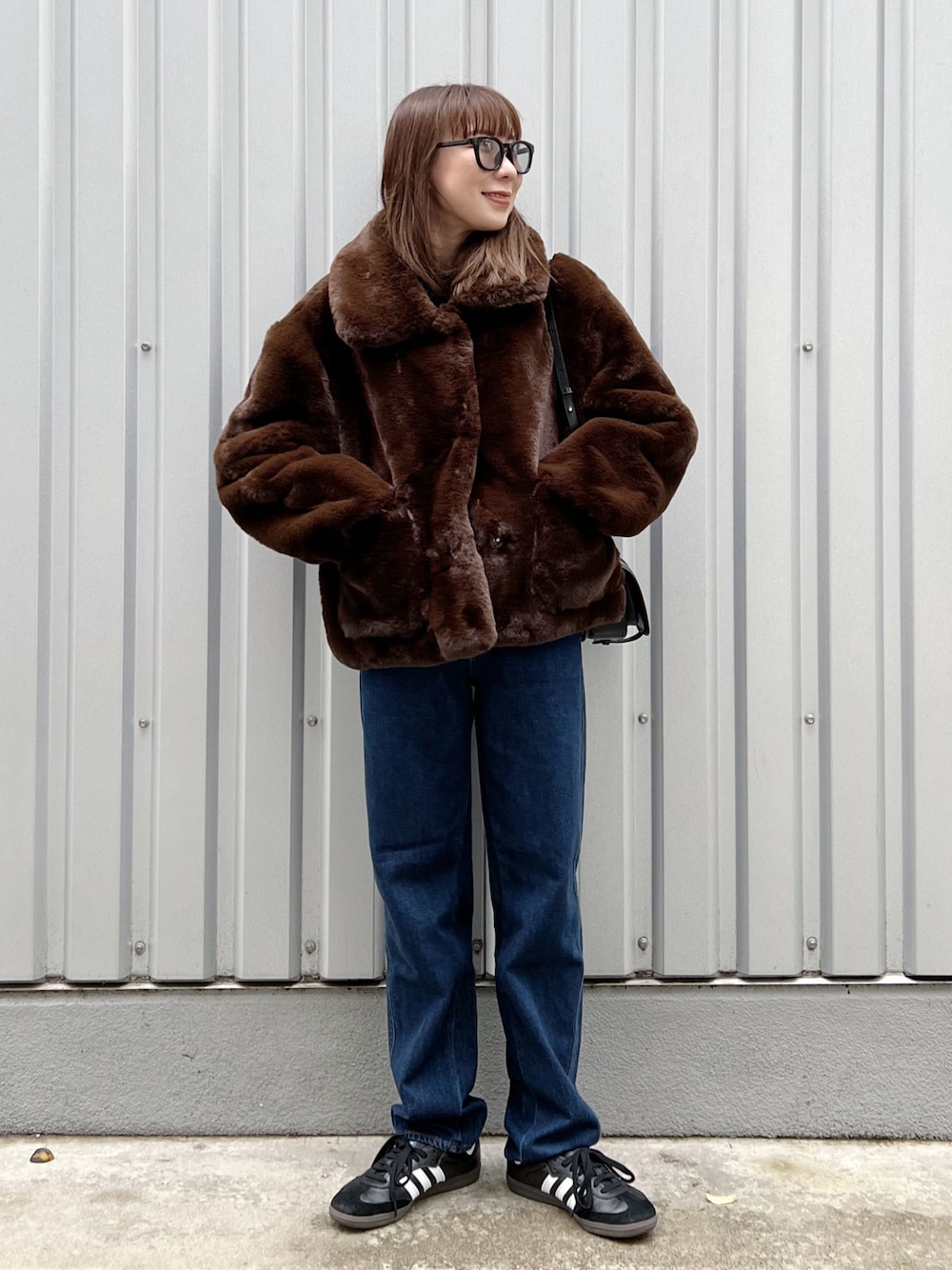 ブラウンのファーコートをカジュアルに着ました❤️ デニムはUNIQLOのカーブパンツです! 足元はスニーカーにして、ゴージャスになりすぎはいようラフに🙆♀️❤️