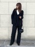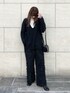 白ロンT×深Vニットの組み合わせ大好き❤️ オールブラックでもインナーの白ロンTが見えることでほどよく抜け感が出てバランスとりやすい🙆♀️✨ 履くだけでオシャレに見えるパンツもお気に入りアイテム!