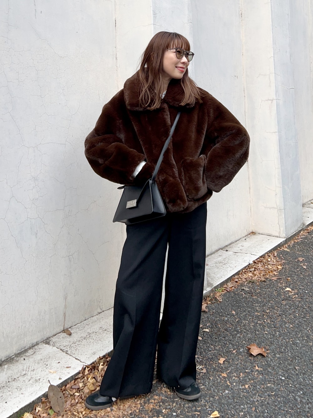 Jakkeのファーコートをメインにしたコーデ❤️ ゴージャスになりすぎないように、 ワイドシルエットのパンツと スニーカーでカジュアルダウンしました🙆♀️