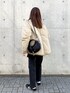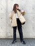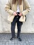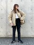 ベージュ×ブラックの大人カジュアルコーデ❤️ ZARAのデニムの上からAMERIのレイヤードパンツについていたニット部分のみを重ねました🙆♀️ シンプルですが、自分らしいコーデになりました👟❤️
