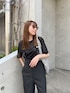 春夏のブラックコーデはこれ❤️ シアー素材のカットソーに、サスペンダーパンツを合わせました! オールブラックでも、素材で涼しげに見せることができるのでおすすめ! いつもは無地Tを合わせるコーデでも、シアートップスに変えるだけで新鮮になる❤️
