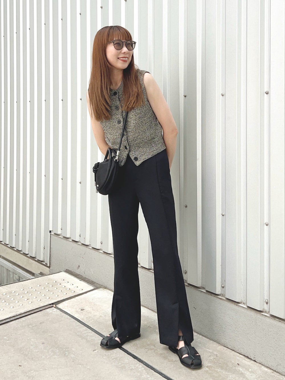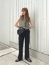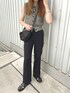 コンパクトなサイズ感のベストと、 細身のフレアスラックスを合わせたキレイめカジュアルコーデ❤️ スタイルがよく見えるコーデになりました!