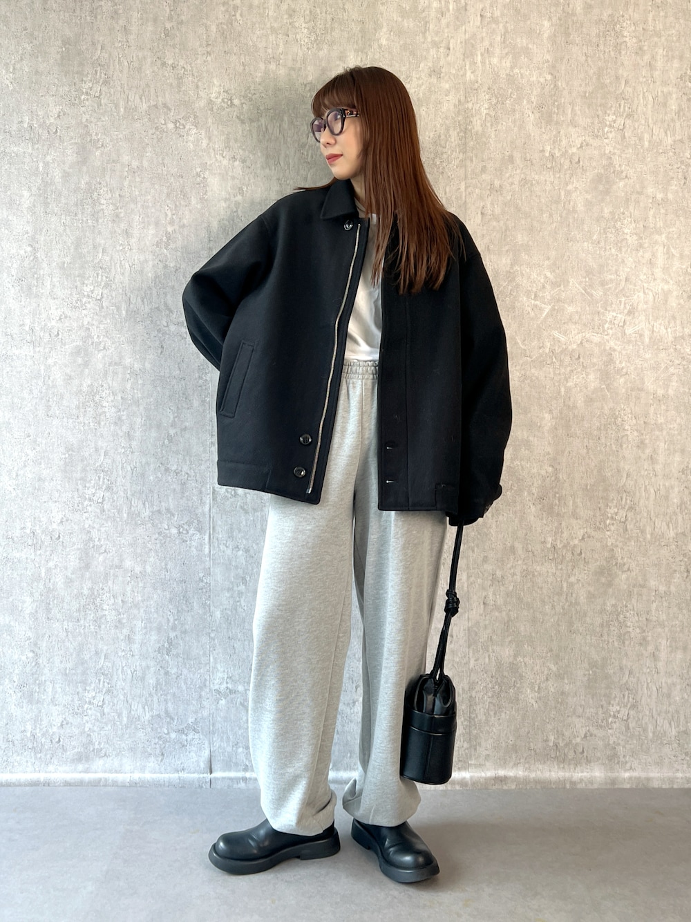 ビッグシルエットがかわいいアウターと、 スウェットパンツを合わせたラフな大人カジュアルコーデです❤️