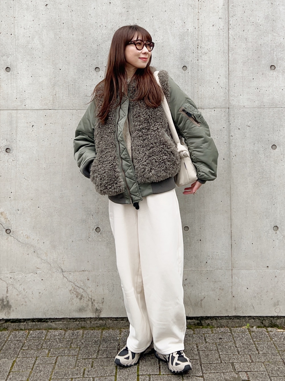 HYKEのMA-1を主役に、他のアイテムは全体を白でまとめました!