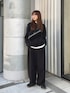 シンプルなオールブラックコーデ! ゆるっとしたサイズ感と、インナーの白ロンTをチラ見せしたところがポイント🙆♀️❤️