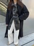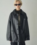 ロングコートの下にフェイクレザージャケットをレイヤードしました! スニーカーをベージュにしてポイントに🙆♀️