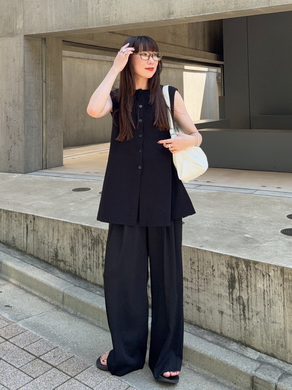 STYLEMIXER¥12,100TODAYFUL¥22,000FOLNUAOOFOS¥7,480blue elephantこの画像から似たアイテムを検索できます3,896154お気に入り (11)40MINAEさんへのコメントNO COMMENTコメントはスマートフォン用アプリからご利用できます着用アイテム¥12,100STYLEMIXERSTYLEMIXERベスト (ブラック系)ベストサイズ:FREE着用コーデ:2件商品を見るZOZOTOWNで購入する¥22,000TODAYFULTODAYFULスラックス (ブラック系)スラックスサイズ:36着用コーデ:4件探すZOZOTOWNで探すFOLNUAFOLNUAバッグ (ホワイト系)バッグ探すZOZOTOWNで探す¥7,480OOFOSOOFOSサンダル (ブラック系)サンダルサイズ:23cm着用コーデ:40件探すZOZOTOWNで探すblue elephantblue elephantメガネ (その他)メガネ探すZOZOTOWNで探すMINAEのベスト「ドライニットフレアベスト」を使ったコーディネートブラックコーデに、バッグだけ白で差し色❤️コメントを表示2025.8.1着用ブランドSTYLEMIXERTODAYFULOOFOSタグ#ノースリーブ#モノトーン#モノトーンコーデ#シンプルコーデ#シンプル#大人カジュアル#ウーフォス#夏コーデ#オールブラック#ブラック#ワントーンコーデ#きれいめカジュアル#メガネ女子#リラックススタイル#ゆるコーデモデル情報女性・160cm骨格ナチュラルロングヘアー似ているアイテムSTYLEMIXER × ベストTODAYFUL × スラックスOOFOS × サンダルMINAE@3inac / 160cm / WOMEN / ロングヘアー0コーディネート0フォロワー注目のコーディネートアプリでもっと見るもっと見る