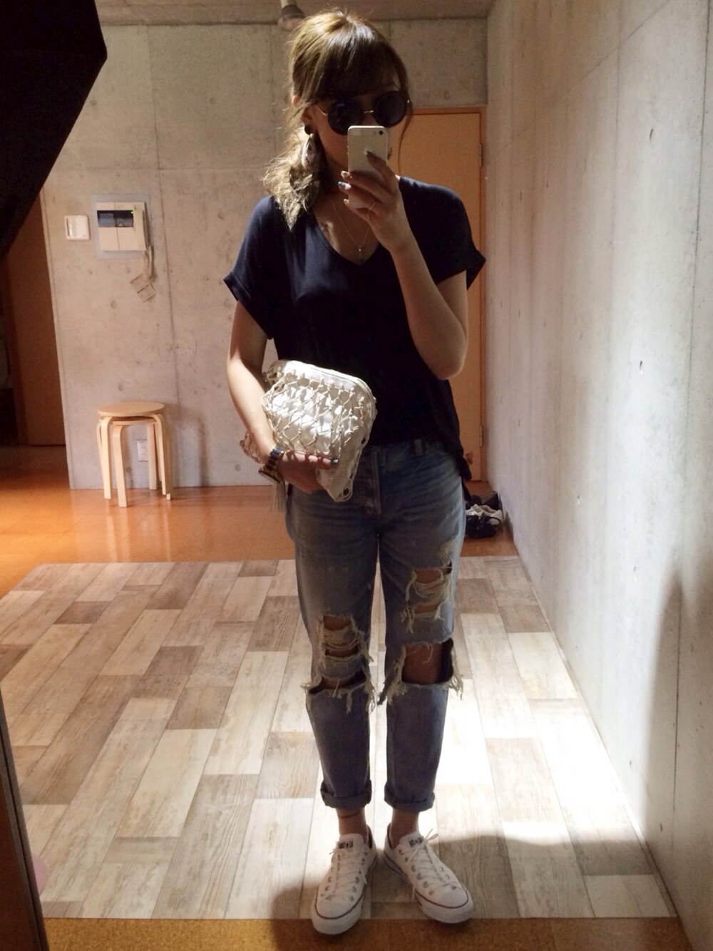 デニムとクラッチおニュー♥️♥️ インスタもよろしくお願いします♥️ @3c___