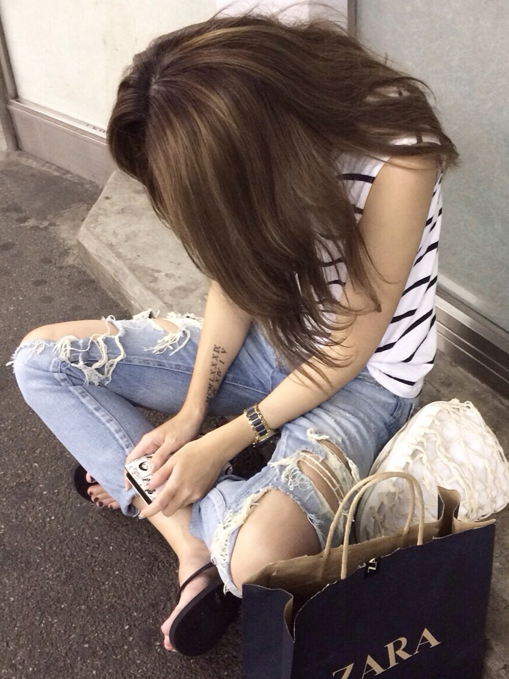 ボーダータンクにクラッシュデニムー♥️ インスタ→@3c___