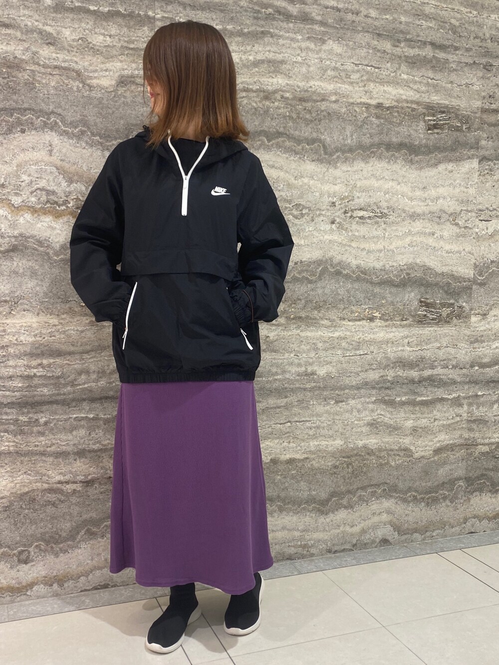 NIKE code💜 . 紫がすごく好き♡ . 寒い時にさっと羽織れる一枚、かつ、薄くてコンパクトに持ち運びやすいので使いやすいです◎